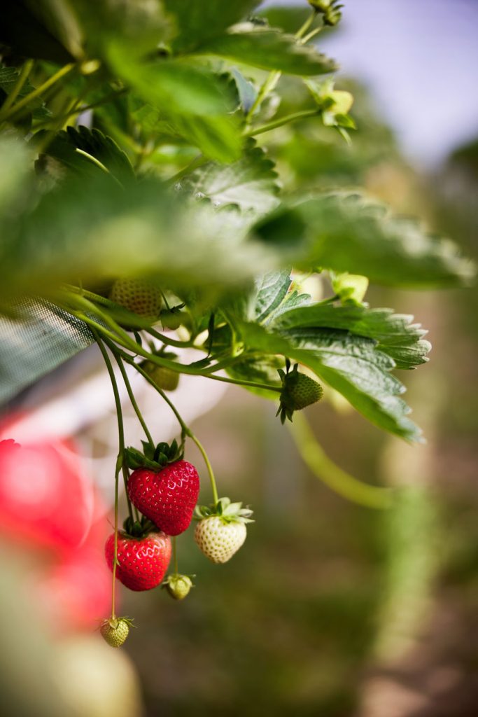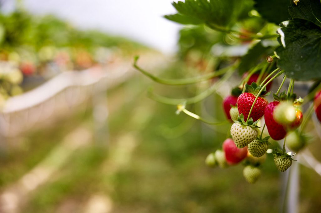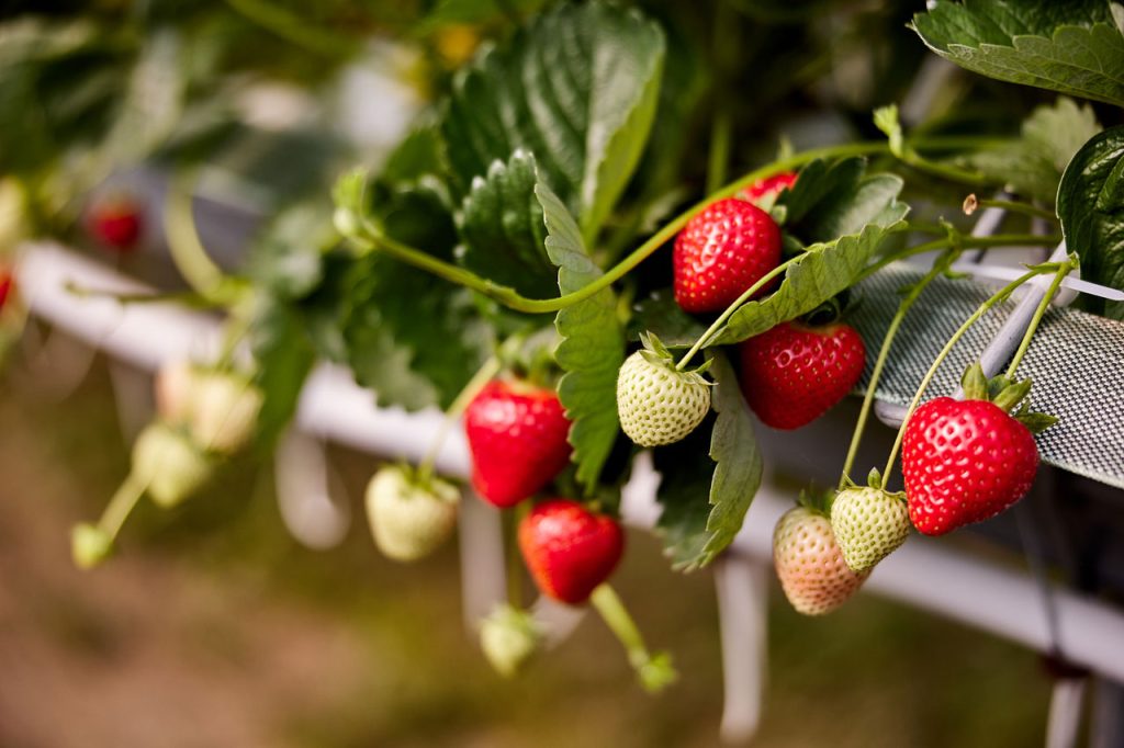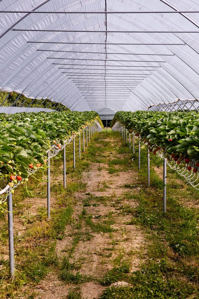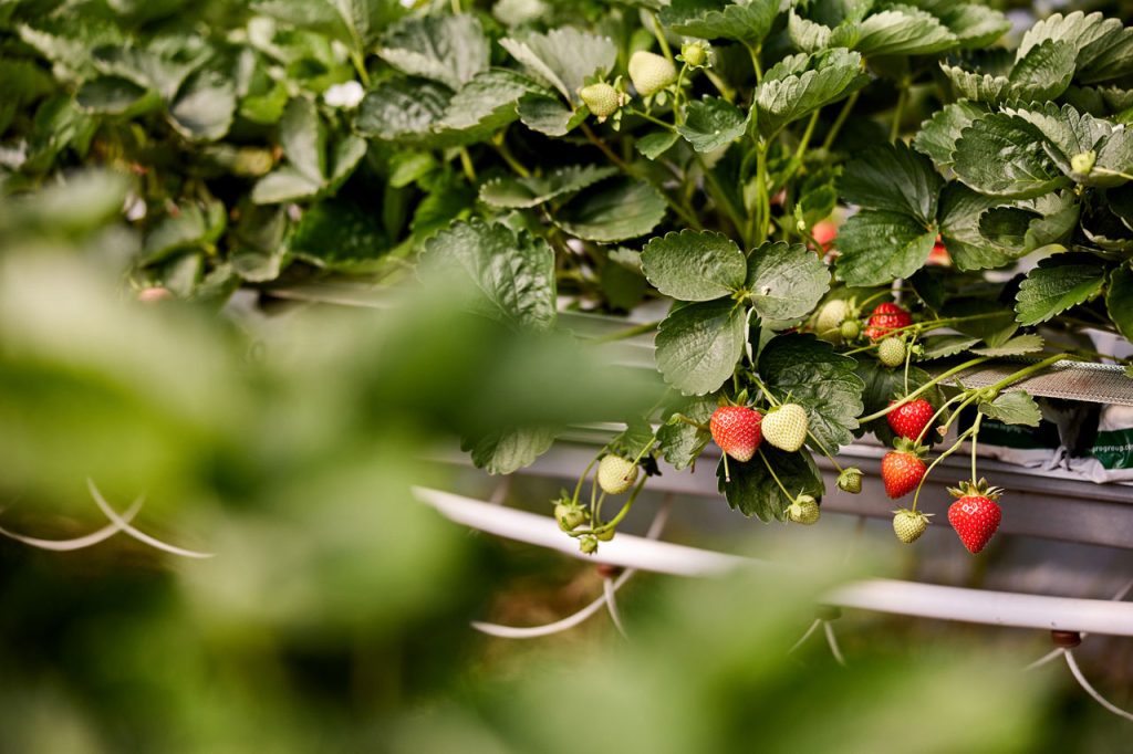 Truskawka hodowana jest w tunelach, w macie kokosowej, na rynnach o wysokości około 150cm